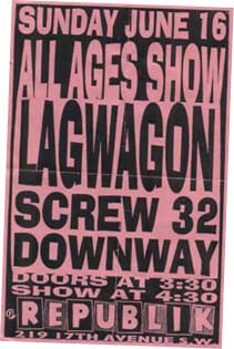 The interview was conducted shortly after the release of Hoss which saw Lagwagon hit the road with Screw 32; it was also their first tour with ex-RKL drummer Dave Raun who has been with the band ever since. As you'll see in the interview, Plourde's departure almost split up the band, but they managed to keep going and are now in their 15th year together.