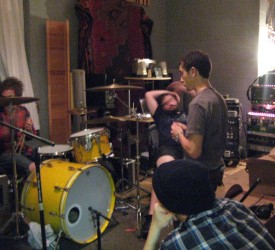 With intermittent breaks, we finished basic tracking around 8 a.m., I took a 45 minute nap, then recorded guitar leads. Lack of sleep notwithstanding, Andy and I jumped up and down like schoolboys in listening back to the feedback I cut on a song. Meanwhile, Ian and Eric's girlfriend lay like casualties on the couch and chair in the hallway. Matt nailed his guitar leads and we eventually wrapped the session up around 1 p.m. We were too tired to properly listen back to all the songs, but I think everyone felt pretty ecstatic about all we had accomplished in that single day.