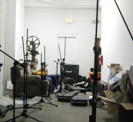 The drum tones sounded really cool, a la Pinkerton; enough like Pinkerton to make Andy say "That sounds too much like Pinkerton, we need to change that." We got the guitar amps set up and played together for a little while. I noticed the songs on this album are a lot more focused on developing dynamics within each song, as opposed to the full-speed ahead approach we previously employed. There was a good nervous energy amongst us. I also think the room was a comfortable fit in that it didn't feel too much like a studio, which can sometimes be a drag to spend long hours in. We weren't to start tracking until the next day, so once we got the tones where we wanted them we called it a night, eh, morning (5 AM).