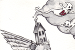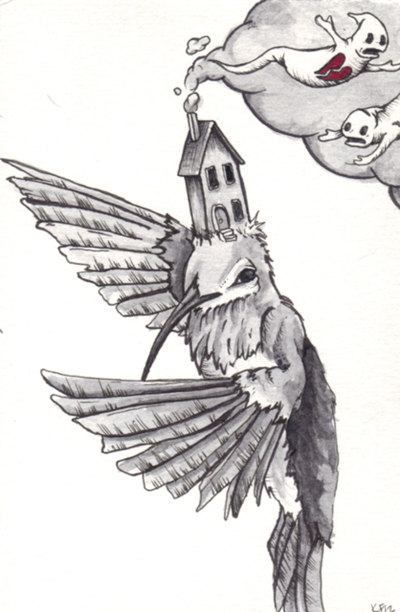 Kristen Ferrell makes incredibly awesome, highly detailed, trippy art that just completely scares the bejeezus out of me. She painted a picture of a hummingbird nailed to a Boston Terrier. She makes cupcakes with human fingers and dentures stuck inside of them. She sketched two birds (with Chimneys coming out of their heads) fighting over a severed finger. She has a Chiweenie that she treats like a child. You ain't gonna see that on the Bob Ross show, that's for sure.