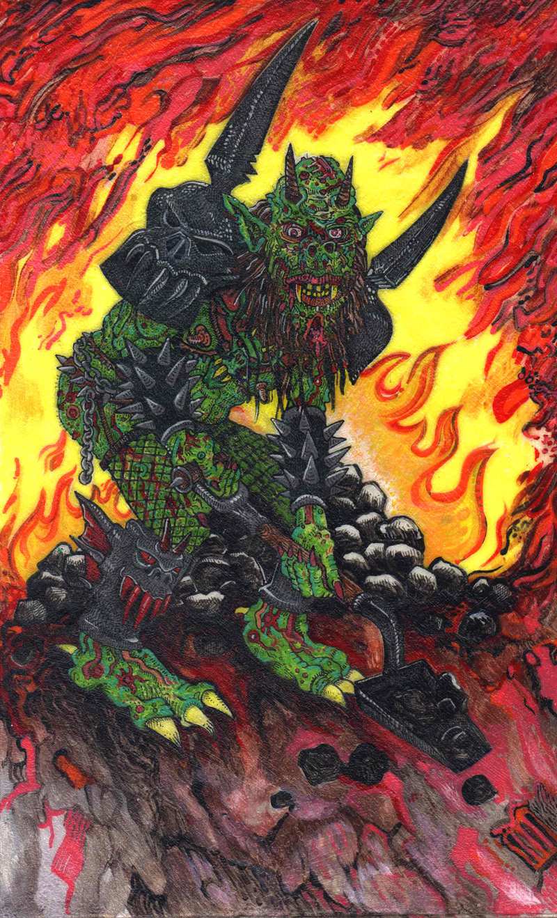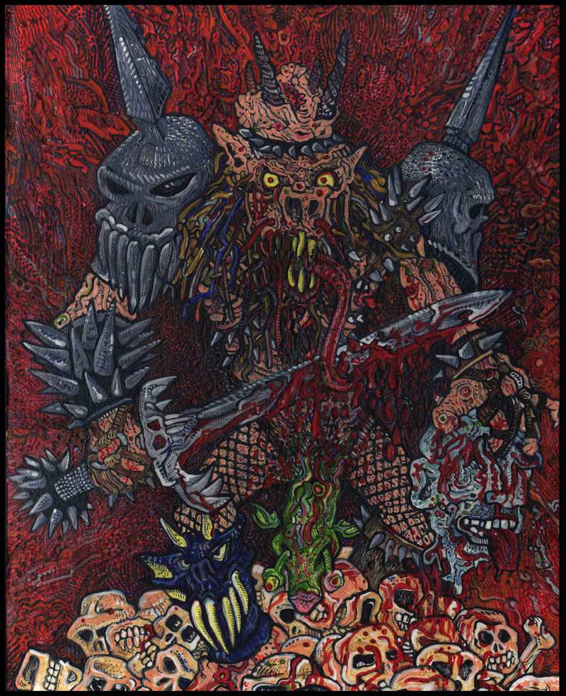 A titan has crossed the threshold and today the world is a little less bright. As you probably know, earlier this week Dave Brockie of GWAR passed away. Although Dave was best known as being the favorite slave of GWAR vocalist Oderus Urungus, he was also a respected visual artist in his own right, creating trippy and vivid paintings as well as props for GWAR themselves.