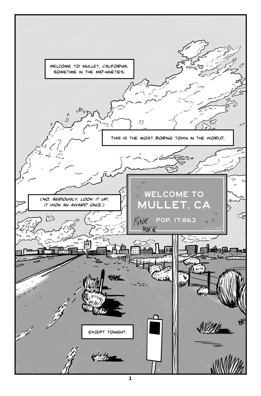 For all my inexperience, I am very proud of the book. It's goofy, silly, and punk rock. It exists as both a love letter to the punk scene, while also making complete fun of it. Despite it taking place in the nineties and in a town called "Mullet", I think a lot of people can see themselves in it, no matter if you lived through that time or not. Even if what defines a "Hardcore" punk or "Skate" punk has changed a bit over the years, I think we all have a bit of these punks in us. I'm really excited to work on issue two. I hope you guys all enjoy this little teaser and a huge thank you to punknews.org for letting us showcase a few pages here. "