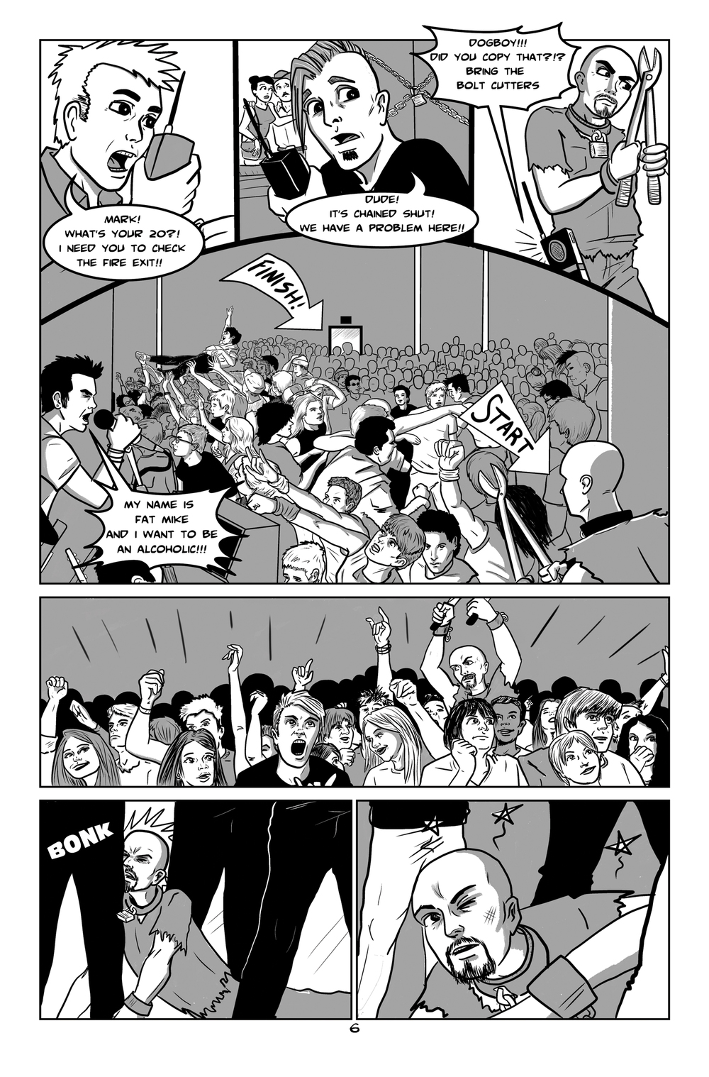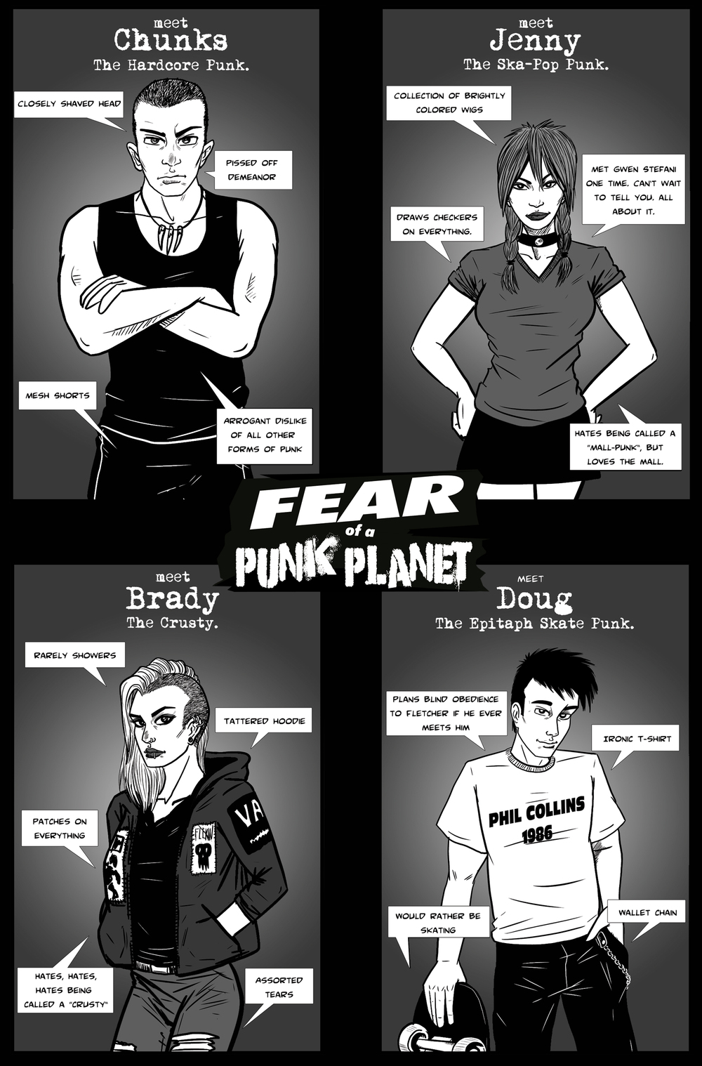The comic is a resurrection of Escalante's late 90's cartoon of the same name (which was one of the first Internet shows!) It follows around a bunch if punk rockers who do punk rock things. Check out the first ten pages below along with a couple of quotes from the creators. You can order the comic here.