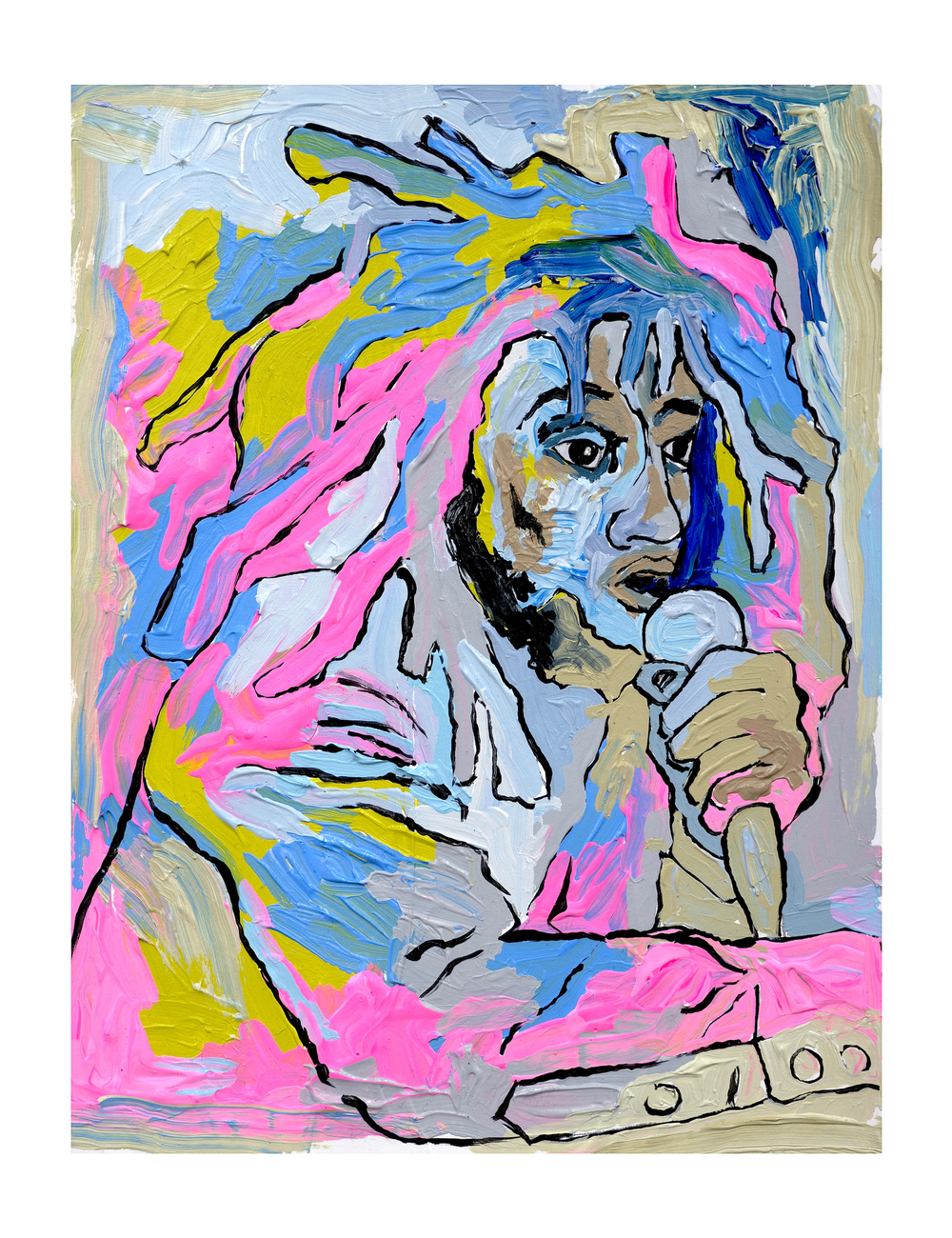 A lot of your current work deal with punk rock icons- Strummer, H.R., X, David Bowie… when you represent these people, are you seeing them as an ideal, or as an actual person with flaws and eccentricities? I’m not really trying to convey something about the person- I’m just trying to represent an image. In the same ways the classical painters would do religious icons or Andy Warhol would do Marilyn Monroe, and so on, there’s something to be said for painting figures that are iconic that are already in the subconscious of the viewer. I like to try to take the images, that viewers already know, and try to add a depth or mystery to them to make it something new.
