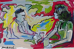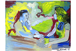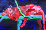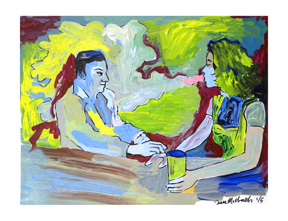 Some people seem to have a direct link to the Muses and Jesse Michaels is one of those people. Creativity just radiates from the guy. His indelible mark is already imprinted in history via three of his amazing, influential bands: Operation Ivy, Common Rider, and Classics of Love. Each of those bands found Michaels writing fundamental truths in poetry of unparalleled finesse. But, on top of that, Michaels has equaled or even surpassed his musical accomplishment with his visual art. Featuring iconic imagery poised in abstract situations, his drawing and paintings are as distinct as his musical output, and equally daring. But, whereas many of Michael's songs seem to be rooted in profundity, his paintings are a bit more mysterious- leaving it up to the viewer to find the meaning and twists within.