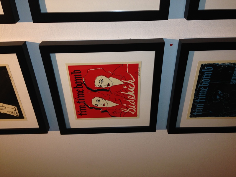 The set up for the event was rather nice. As one entered you were greeted one side by a dj set up and the other a display of the set of 45 screen prints available for sale that evening. Of all the screen prints present my favorite one had to be the piece dedicated to the song "Sidekick", One of many Rancid songs reinterpreted acoustically as part of the Tim Timebomb project and one of the first Rancid songs I heard back in the 8th grade. What I enjoyed most about it was the piece seemed to be an homage to the 1991 classic film Thelma and Louise as featured two women that had somewhat of a resemblance to the duo.
