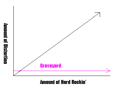Opener "Evil Ways" starts out with some jazz-fusion vibes, channeling Spirit before it rips into a hard, driving riff. "Lost in Confusion" lends a bouncy tempo to its 3/4 time signature. "Submarine Blues" rocks hard from the get-go, inspiring an intense flailing of limbs and some serious headbanging. The scope of how hard this record rocks is in extreme contradiction in compared to amount of distortion used. In fact, I've drawn a scientific chart to examine this further: